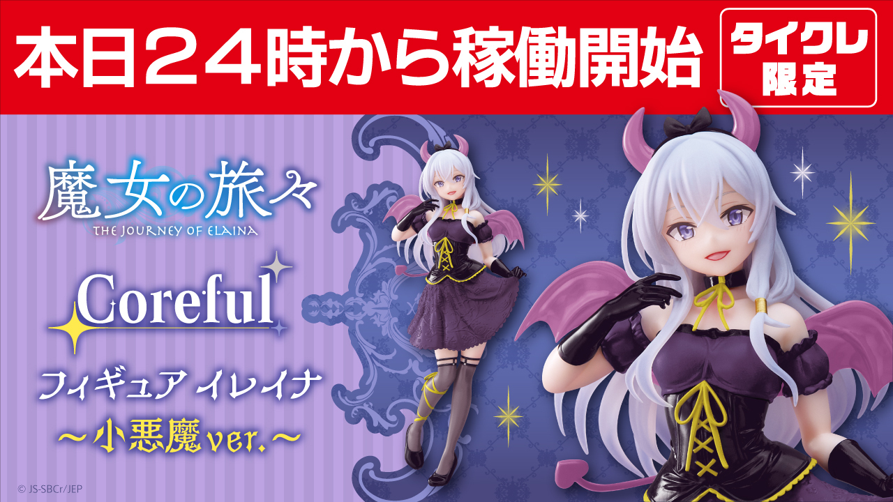 🧹本日24時から稼働開始🧹TVアニメ「魔女の旅々」よりイレイナのフィギュアがタイクレ限定カラーで登場!引き込まれるくらい魅力的な小悪魔衣装のフィギュアです✨お部屋に飾れば虜になること間違いないです…💗▼#タイクレ をプレイhttps://t.co/FO4qGUKCOP#魔女の旅々はいいぞ pic.twitter.com/X6IW7cmMcn