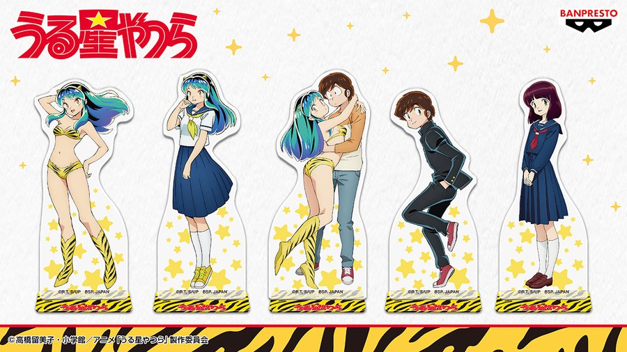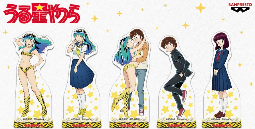 「うる星やつら」から、ラム、諸星あたる、三宅しのぶのスタンド付きアクリルプレートが登場します。