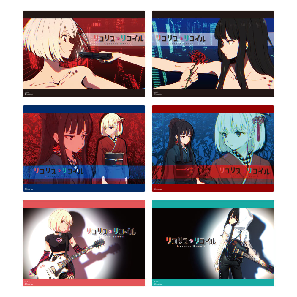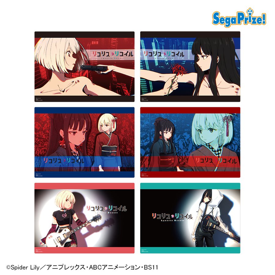 全6種のビジュアルボードには、第1話、第4話、第7話のCM前後に使用された美麗イラストのアイキャッチがデザインされています。この機会に「リコリコ」のプライズグッズをオンクレで手に入れましょう。