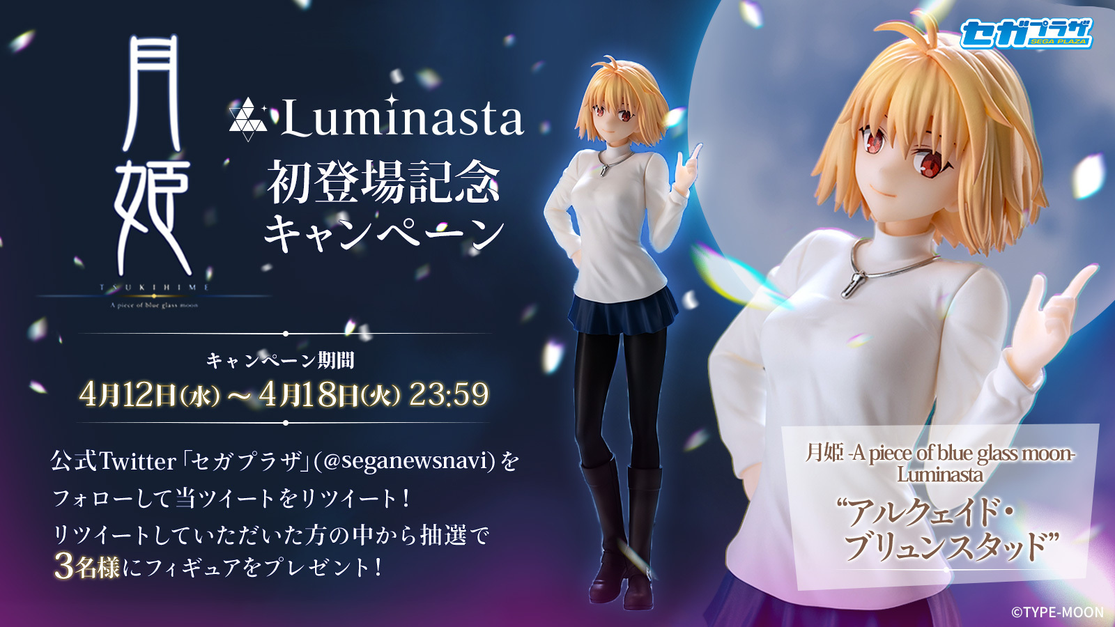 【応募用ツイート】「 #月姫 -A piece of blue glass moon-」より、「アルクェイド」が“ #Luminasta ”フィギュアになって4/14より全国のアミューズメント施設に順次登場!これを記念して抽選で3名様にプレゼント🎁フォロー&RTでご参加ください!詳細https://t.co/KIoBSnWlzW#セガプライズ pic.twitter.com/4YGkp3XKDw— セガプラザ公式 (@seganewsnavi) April 12, 2023