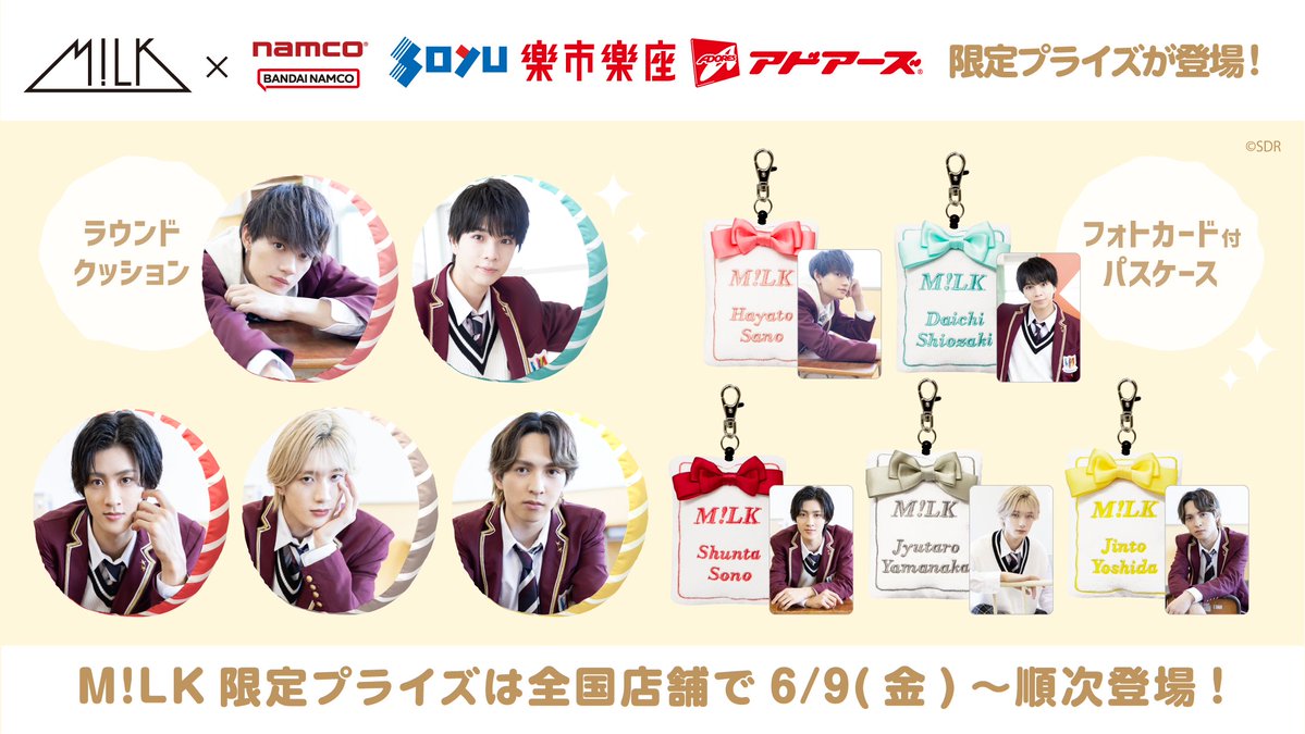 5人組ボーカルダンスユニット『M!LK』の限定プライズが登場します!