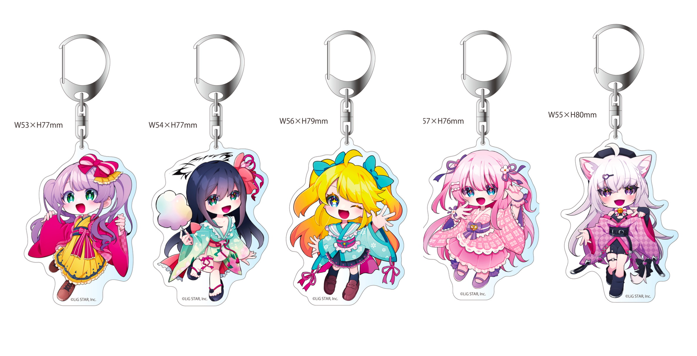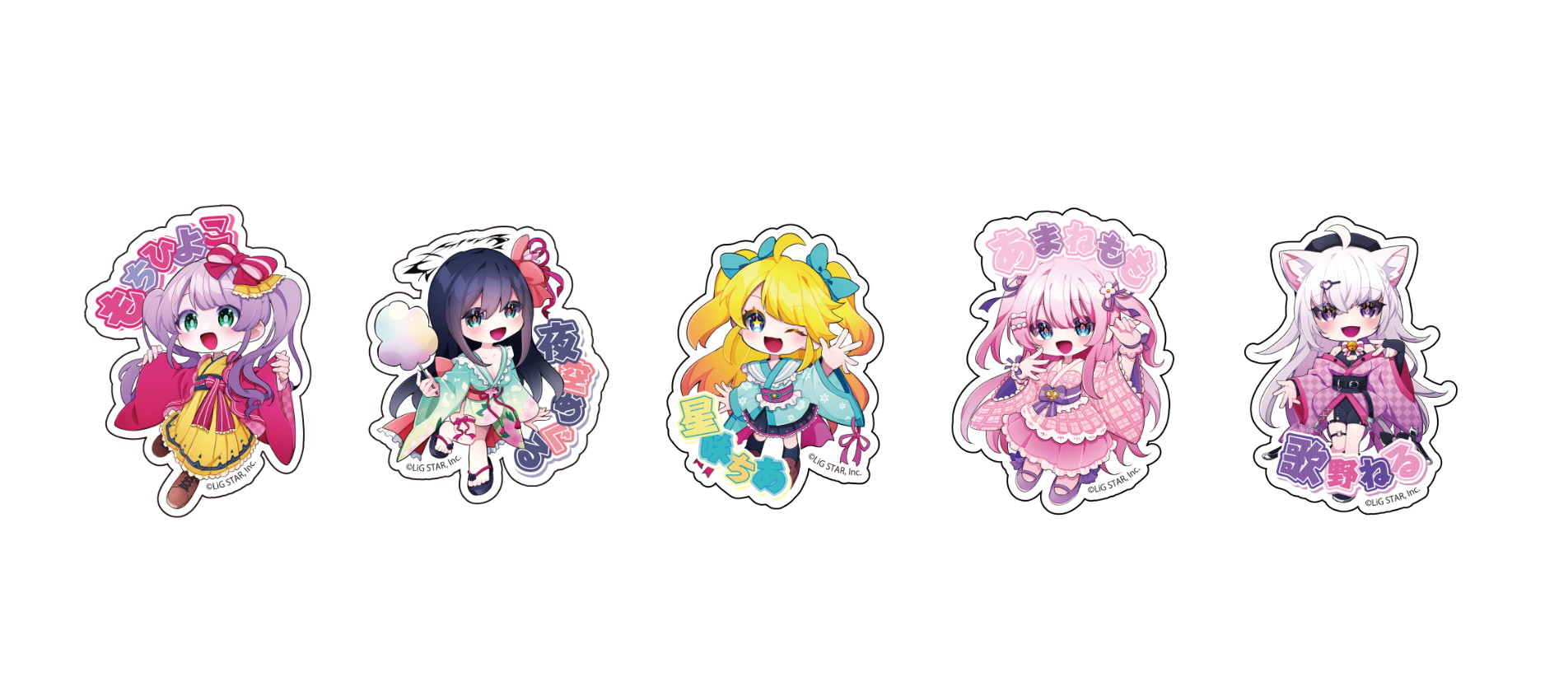 DMMオンクレ限定プライズとして、人気VTuberであるもちひよこさん、あまねももさん、星咲ちあさん、歌野ねるさん、夜空めぐるさんの描き下ろしイラストが使用されたTシャツ、アクリルキーホルダー、ステッカーが展開中です。
