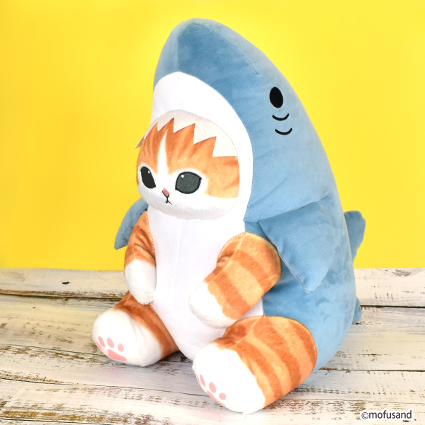 大人気イラスト『mofusand』より、「サメにゃん」がモチーフの超BIGぬいぐるみとシリコンポーチがプライズで登場!