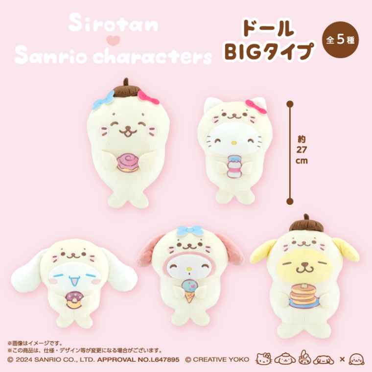 『しろたん×サンリオ』から、しろたん、ハローキティ、シナモロール、マイメロディ、ポムポムプリンのBIGぬいぐるみがプライズで登場!
