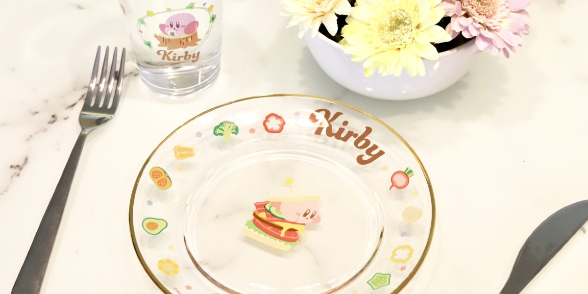 『星のカービィ』にて、カービィのイラストと豪華な金縁で彩られた金縁クリア食器セットがプライズ景品として登場!
