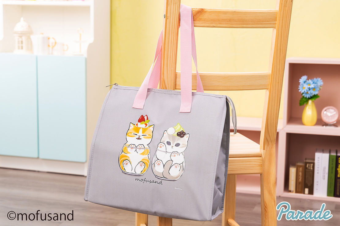 大人気イラスト『mofusand』より、スイーツ&ネコと被り物ネコ&クマのイラストを描いた保冷バッグがプライズで登場!