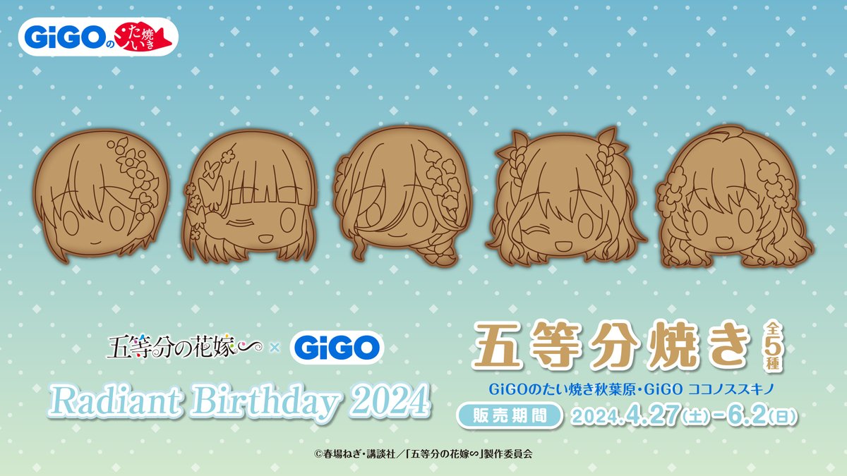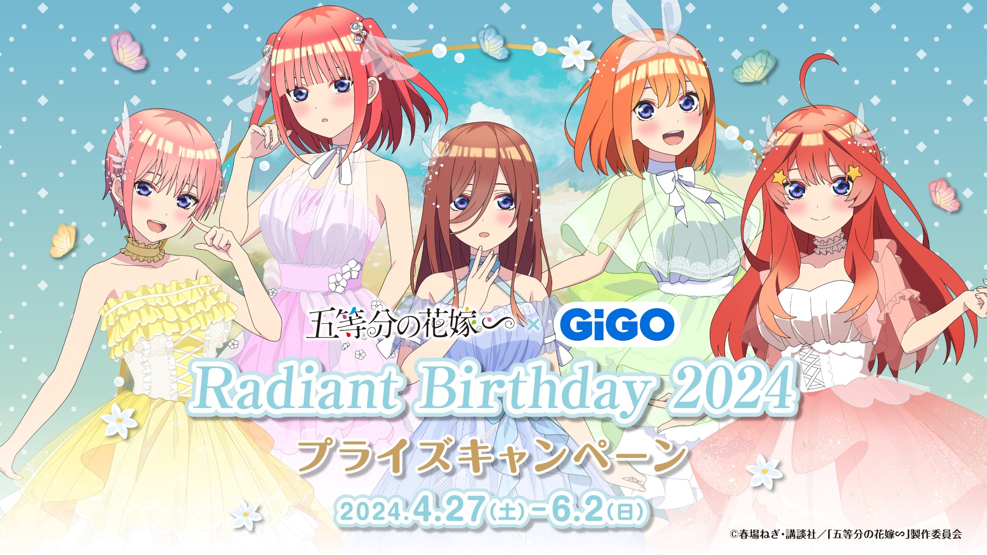 「GiGO ONLINE CRANE(GiGO ONLINE)」にて、2024年4月27日(土)より、『五等分の花嫁∽』の新規描き下ろしイラストを使用した限定プライズが展開されます。