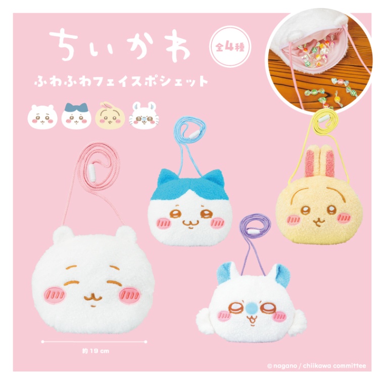 ちいかわ・ハチワレ・うさぎ・モモンガのふわふわフェイスポシェットが登場!