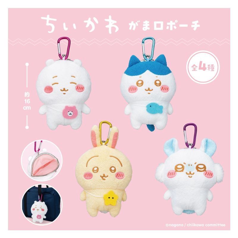 ちいかわ、ハチワレ、うさぎ、モモンガのがま口ポーチがプライズで登場!