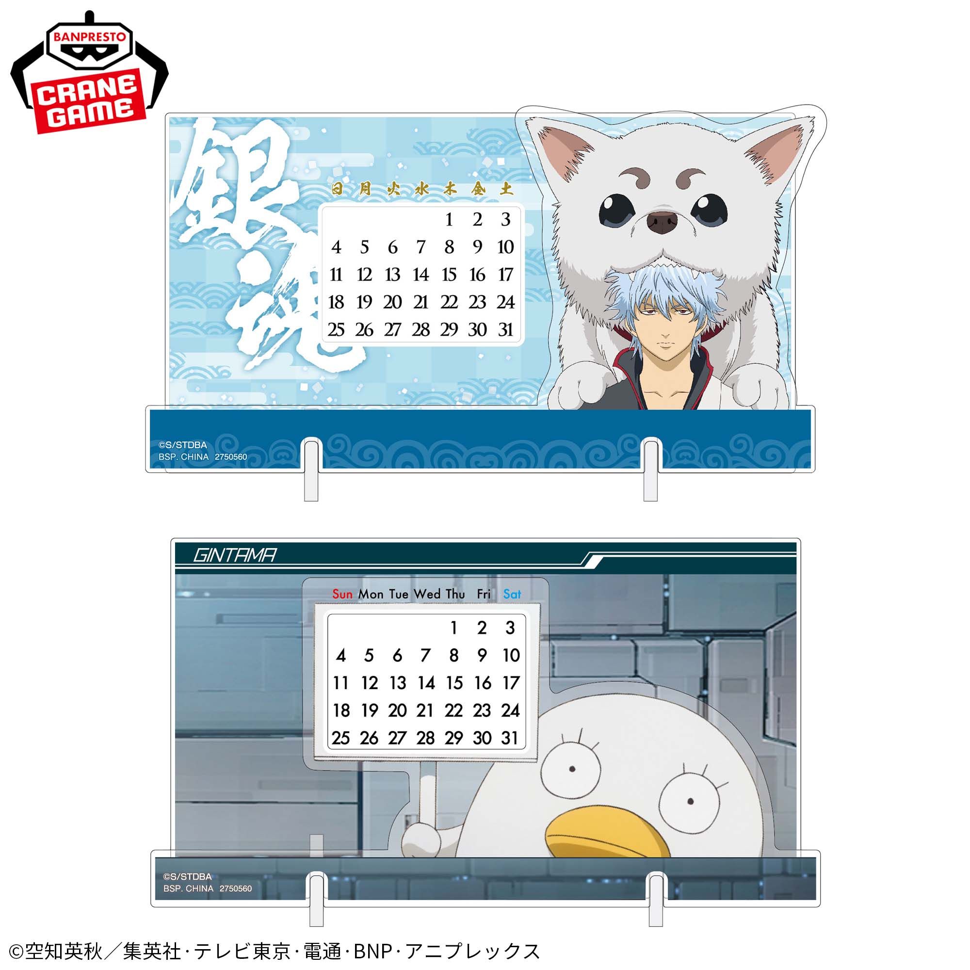 『銀魂』より、「坂田銀時&定春」「エリザベス」のアクリル万年カレンダーがプライズで登場!