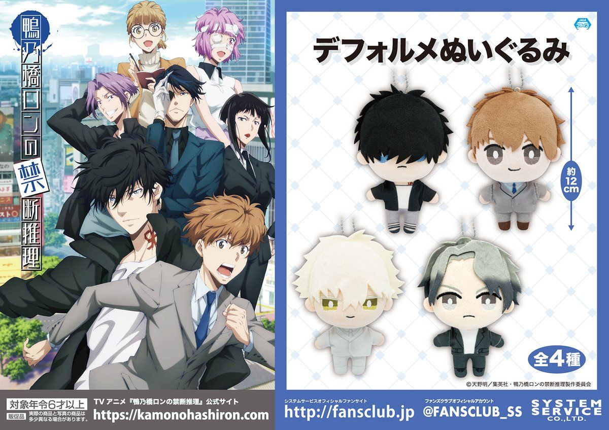 『鴨乃橋ロンの禁断推理』より、「鴨乃橋ロン」「一色都々丸」「マイロ・モリアーティ」「ウィンター・モリアーティ」のデフォルメぬいぐるみがプライズで登場!