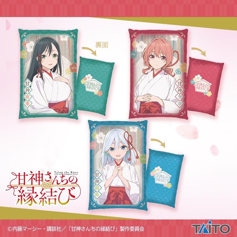『甘神さんちの縁結び』より、メインヒロインである「甘神夜重」「甘神夕奈」「甘神朝姫」のBIGクッションがプライズで登場!