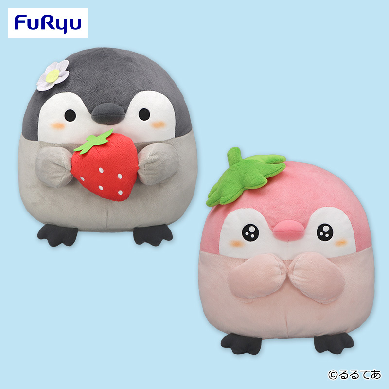 いちごをモチーフにした全2種類を展開。いちごを抱きかかえたコウペンちゃんといちごのヘタを付けたピンクコウペンちゃんを大きめサイズで立体化。肌触りが良い素材が使用されています。