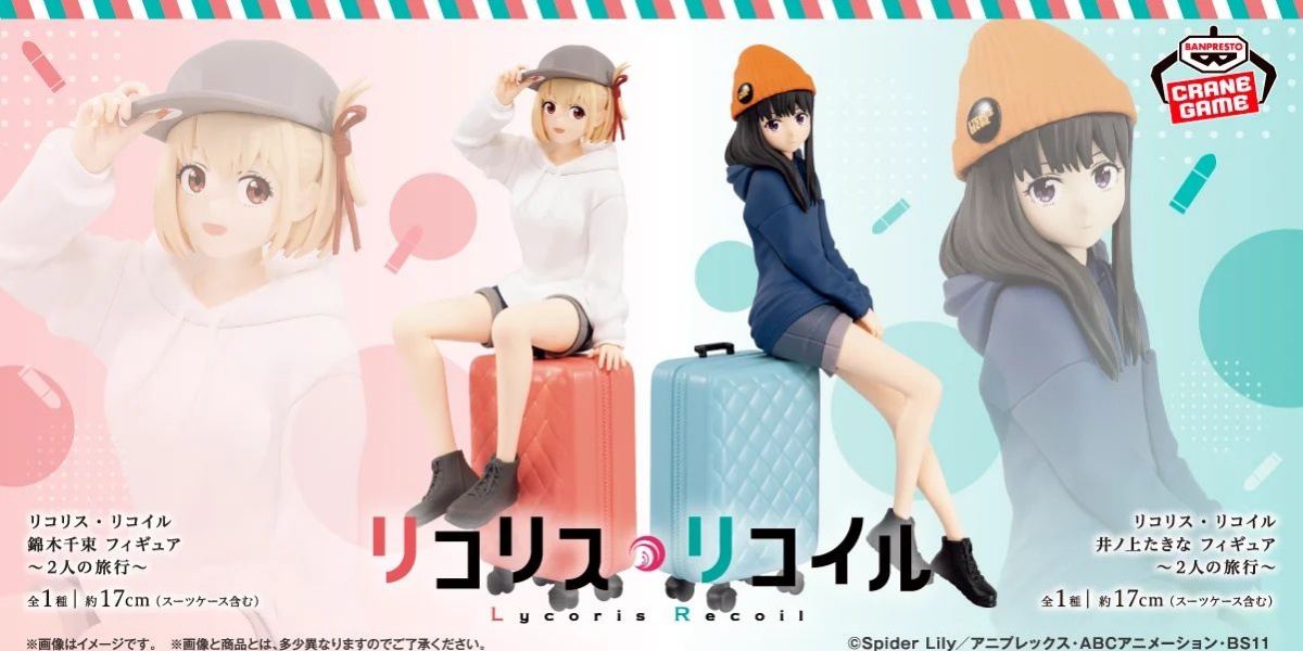 キャリーケースに腰かけたかわいいデザインで、旅行に来た千束とたきなをプライズ化したフィギュアを、この機会にオンクレでゲットしちゃいましょう!