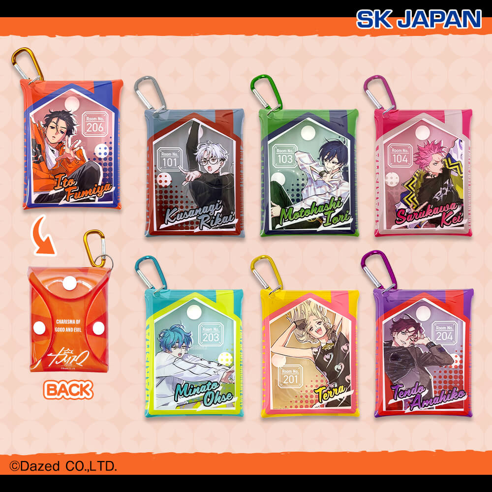 「カリスマハウス」に住む、206号室の「伊藤ふみや」、101号室の「草薙理解」、103号室の「本橋依央利」、104号室の「猿川慧」、203号室の「湊大瀬」、201号室の「テラ」、204号室の「天堂天彦」がラインナップ。クリア素材が使用されているため、ケースを開けずに収納物を確認できます。