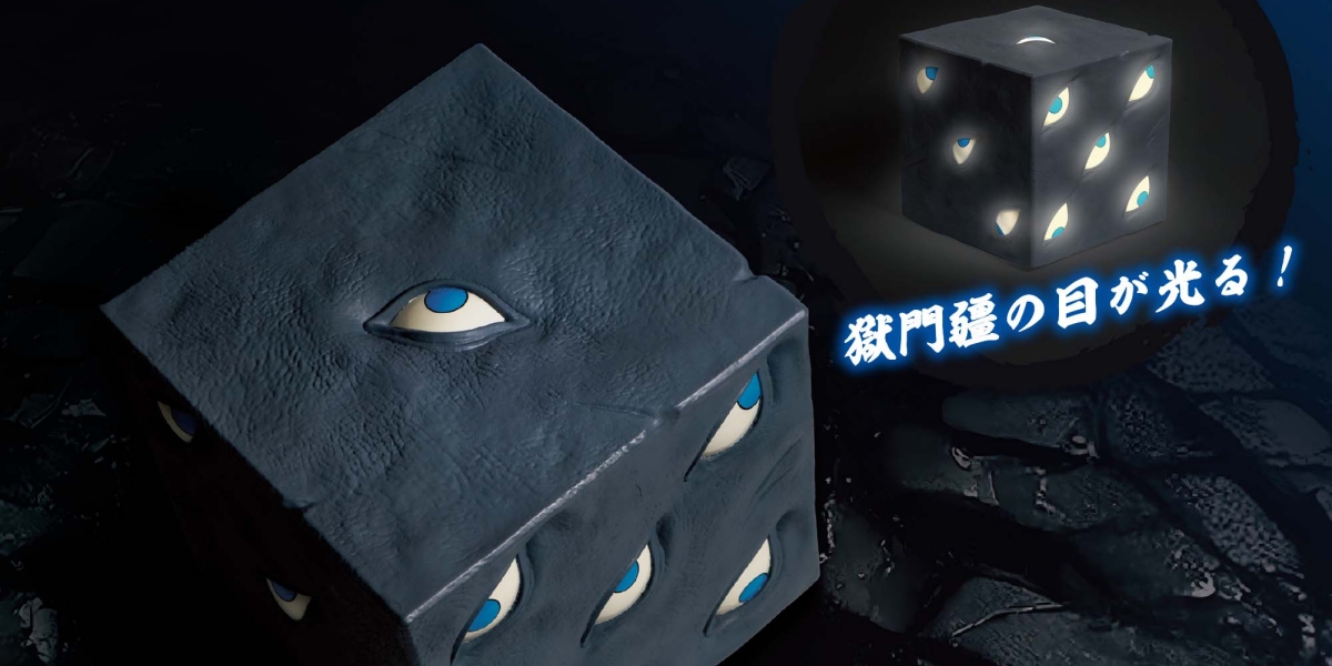 本編で登場したサイズの約2倍である約12cmで再現した本プライズは、6面に点在する眼球が明かりとして機能するユニークなデザインなのがポイント。