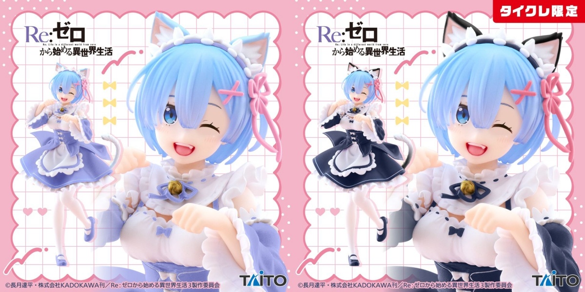 タイトーオンラインクレーンでは、黒色を基調とした猫耳メイドが特徴的なレムのタイクレ限定版フィギュアが登場。