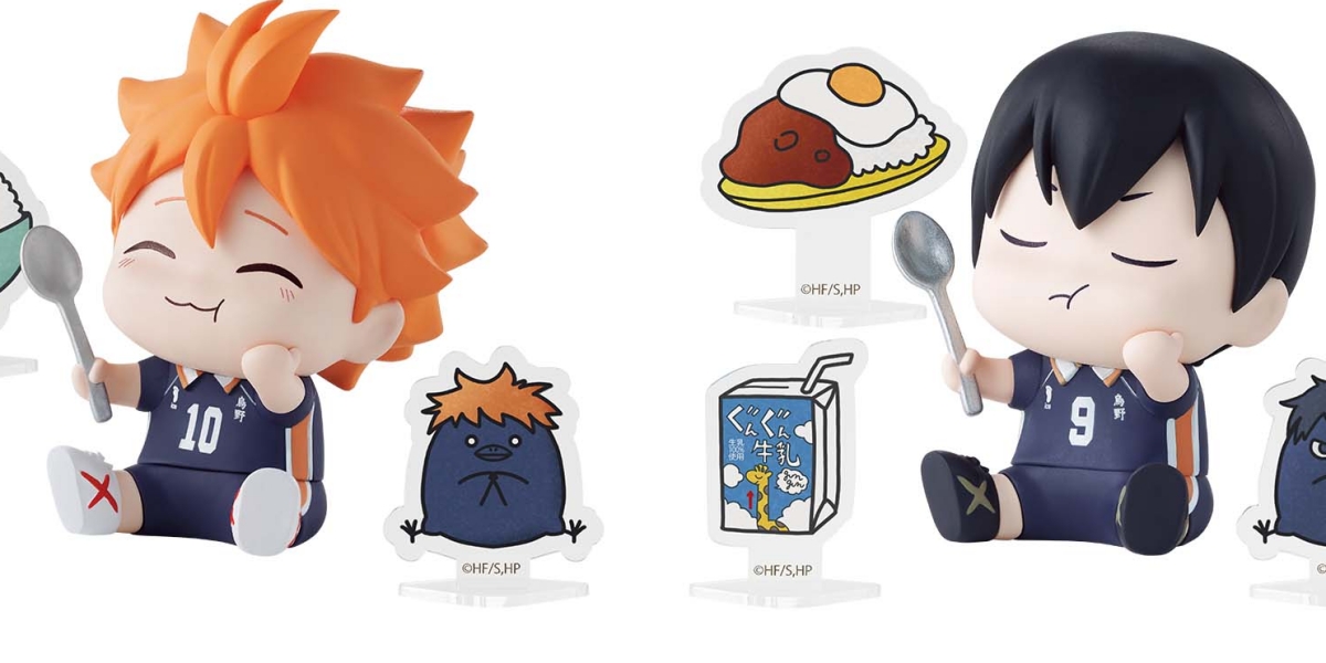 約6cmの大きさで立体化した本プライズでは、日向・影山・月島・山口の食事中の姿をデフォルメ姿で再現しており、各キャラにゆかりのある物を3つのミニプレートで表現!