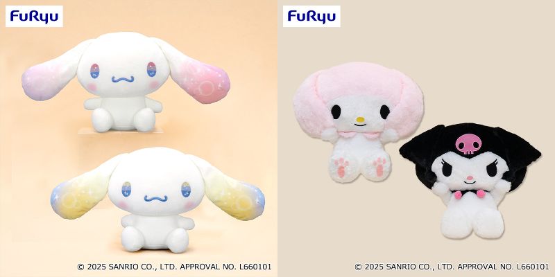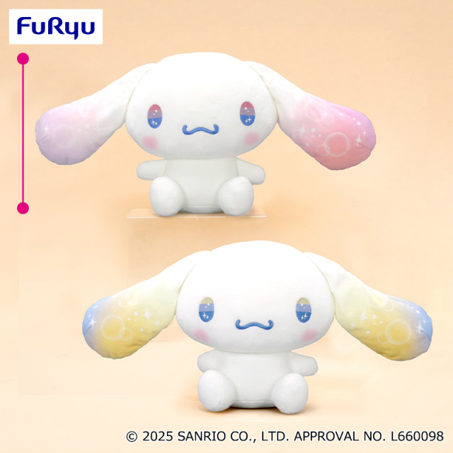 お耳にグラデーションカラーが入った「シナモロール」を高さ約26cmの大きめサイズで立体化。色違いの全2種がラインナップされます。
