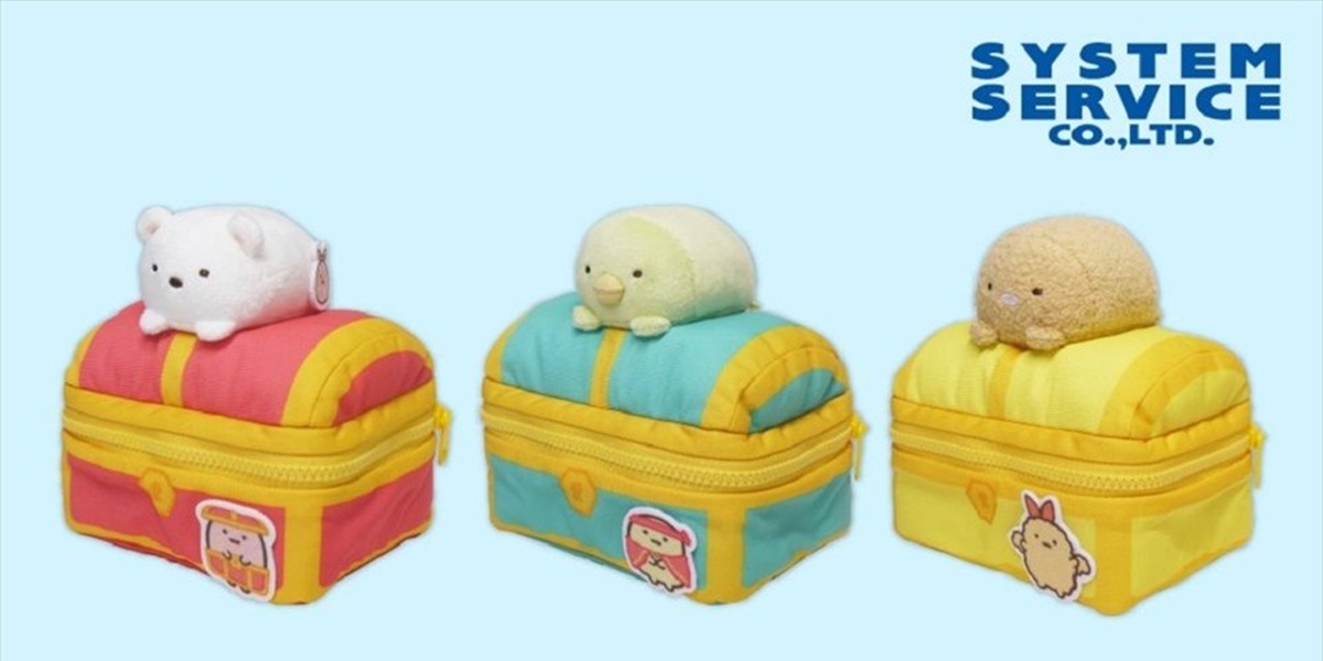 また、「しろくま」「ぺんぎん?」「とんかつ」「ねこ」「とかげ」「おうじ」が上に乗った宝箱型のポーチも展開。すみっコたちの新作プライズをお見逃しなく!