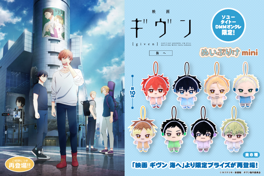 TVアニメ『ギヴン』の続編作品となる映画2部作後編『映画 ギヴン 海へ』から、メインキャラのぬいぐるみがオンクレに再登場します。