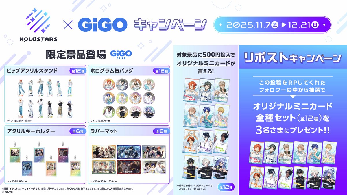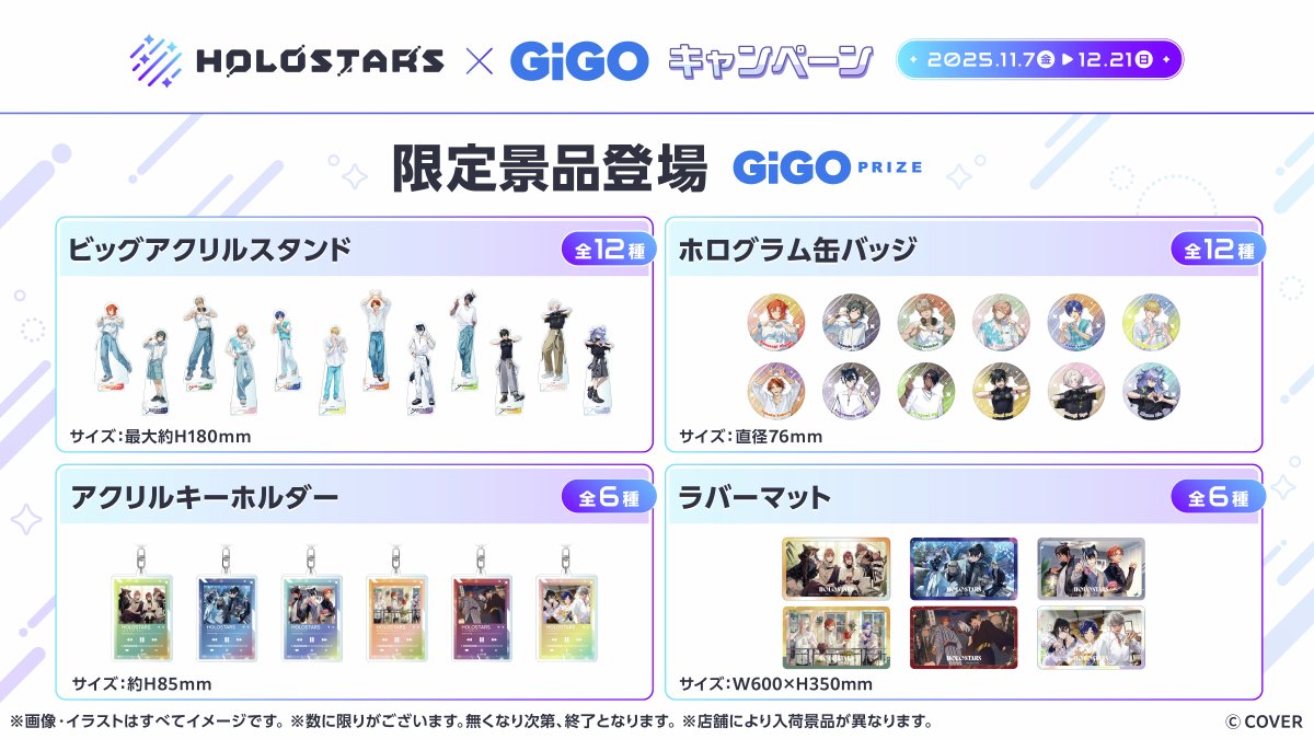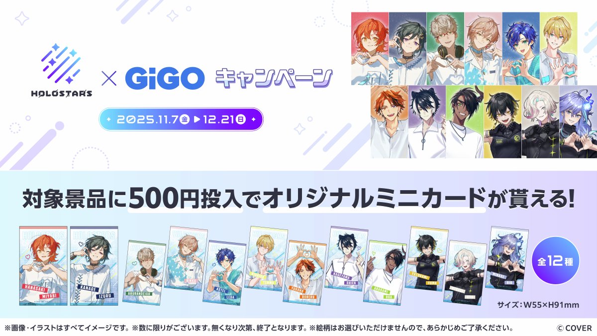 「GiGO ONLINE CRANE(GiGO ONLINE)」にて、2025年11月7日(金)より、男性VTuberグループ『ホロスターズ』とコラボした「ホロスターズ×GiGOキャンペーン」が開催予定です。