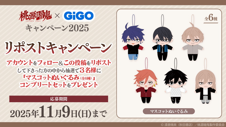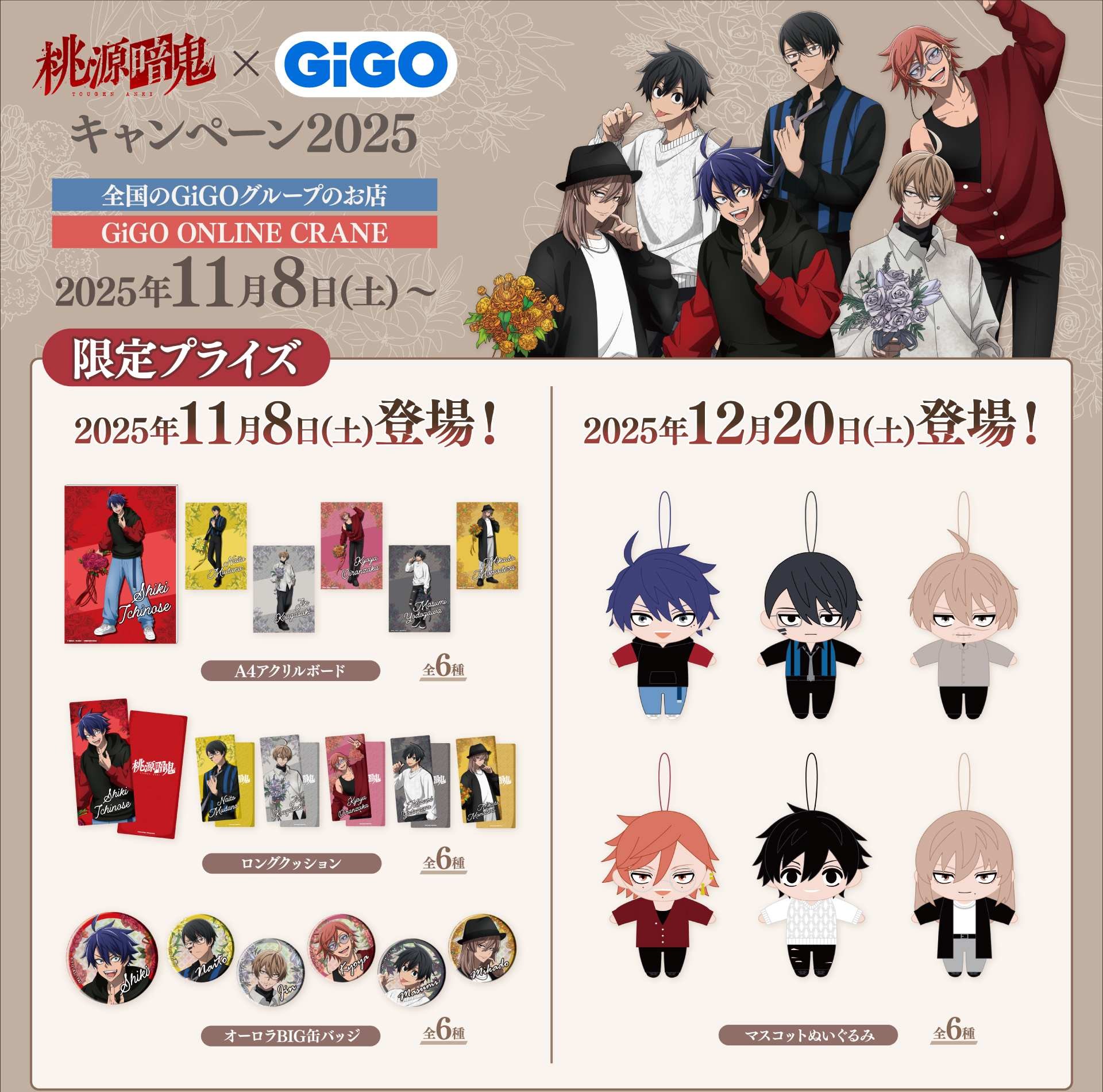 「GiGO ONLINE CRANE(GiGO ONLINE)」にて、2025年11月8日(土)より、TVアニメ『桃源暗鬼』とコラボした「桃源暗鬼 × GiGO キャンペーン2025」が開催予定です。