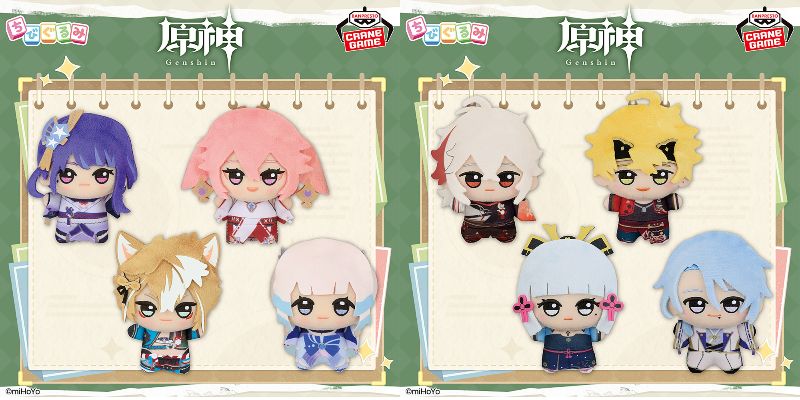 vol.5に「雷電将軍」「八重神子」「ゴロー」「珊瑚宮心海」、vol.6に「楓原万葉」「トーマ」「神里綾華」「神里綾人」がラインナップ。大きさは手のひらサイズの約11cmとなります。