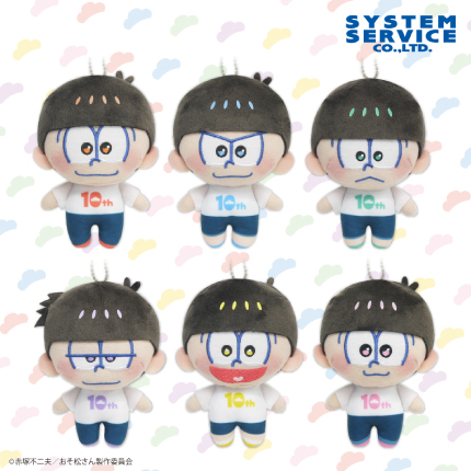 頭にボールチェーンを付けて可愛く再現した本プライズでは、各キャラが着る衣装にアニメ化10周年を記念した「10th」をプリントしているのが特徴。