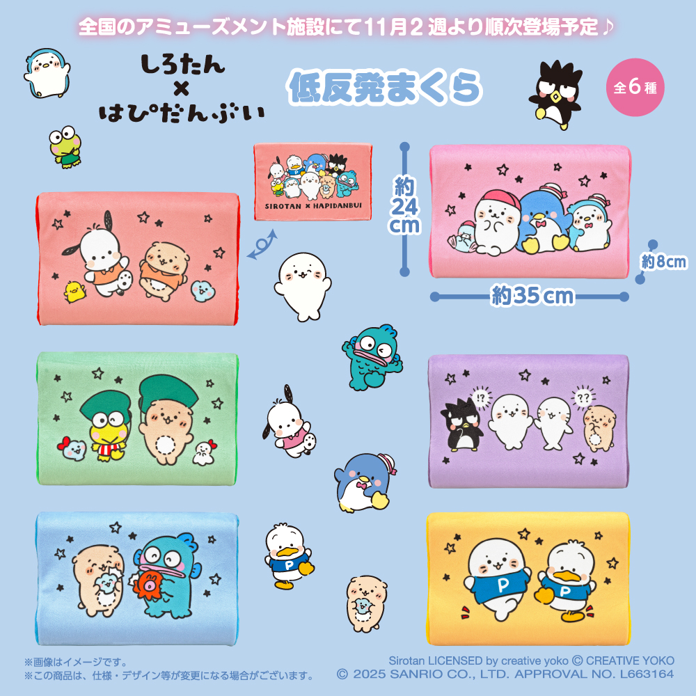 裏面の全員集合デザインにも注目です。しろたん×はぴだんぶいの低反発まくらをオンクレで手に入れましょう。