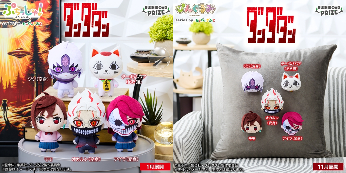 TVアニメ『ダンダダン』より、「モモ」「オルカン(変身)」「ターボババア(招き猫)」「ジジ(変身)」「アイラ(変身)」のぷちっしゅ!とぴんぐるみがプライズ景品としてオンクレに登場!