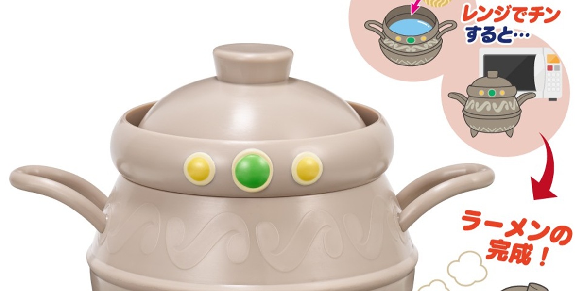 アイテムの合成に必要な「錬金釜」をモチーフにしたラーメンメーカーを展開。袋ラーメンを入れて、レンジでチンすると、ラーメンを作ることができます。