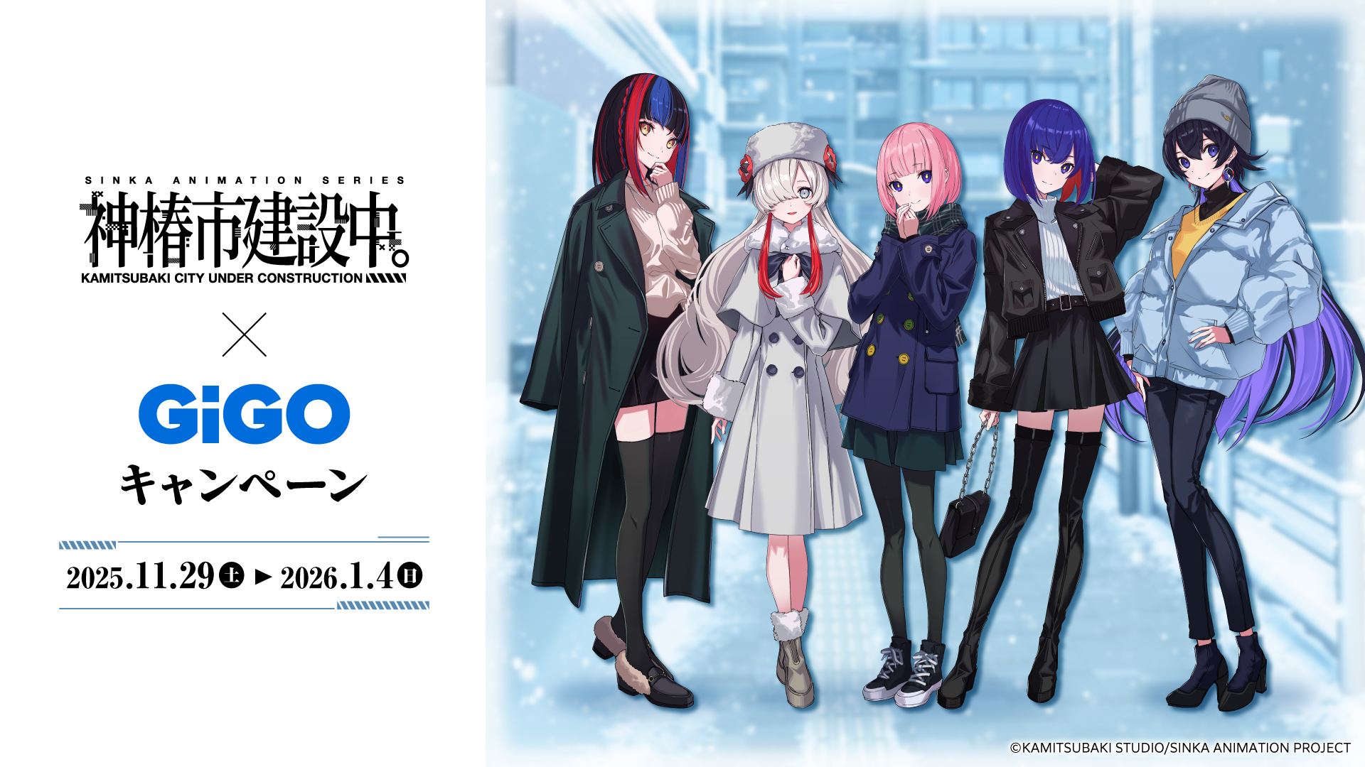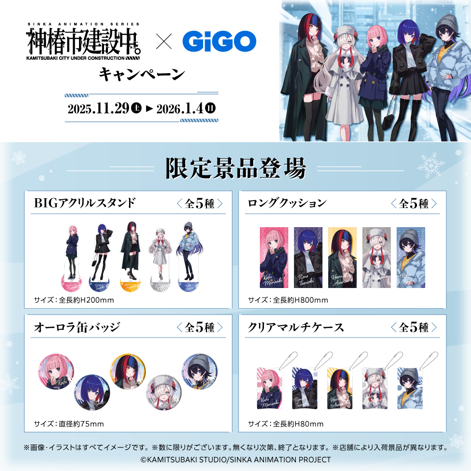 「GiGO ONLINE CRANE(GiGO ONLINE)」にて、2025年11月29日(土)より、TVアニメ『神椿市建設中。』とコラボした「神椿市建設中。×GiGO キャンペーン」が開催予定です。