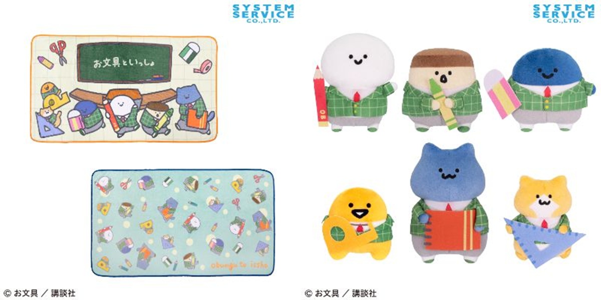 ブレザー制服を着こなす「お文具さん」「プリンさん」「名も無き者」「猫さん」「ゼリーさん」「子猫さん」の描き起こしアートをもとにしたブランケットや、ぬいぐるみが順次展開されます。