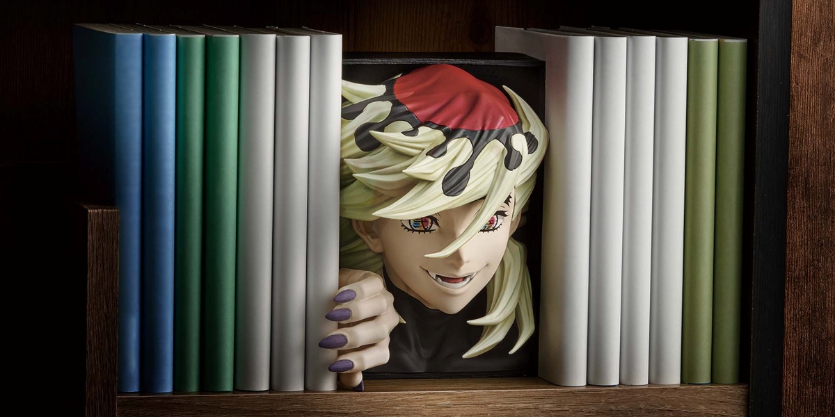 ひょっこりとキャラクターたちが飛び出してきた姿を表現した「HYOKOFIG」シリーズで、本棚やデスクなどの隙間に飾れる上弦の弐・童磨を約16cmでプライズ化!