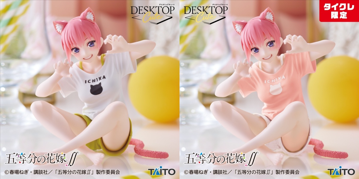 タイトーオンラインクレーンでは、ピンク色を基調とした猫耳ルームウェアが特徴的な「中野一花」のタイクレ限定版フィギュアが登場。