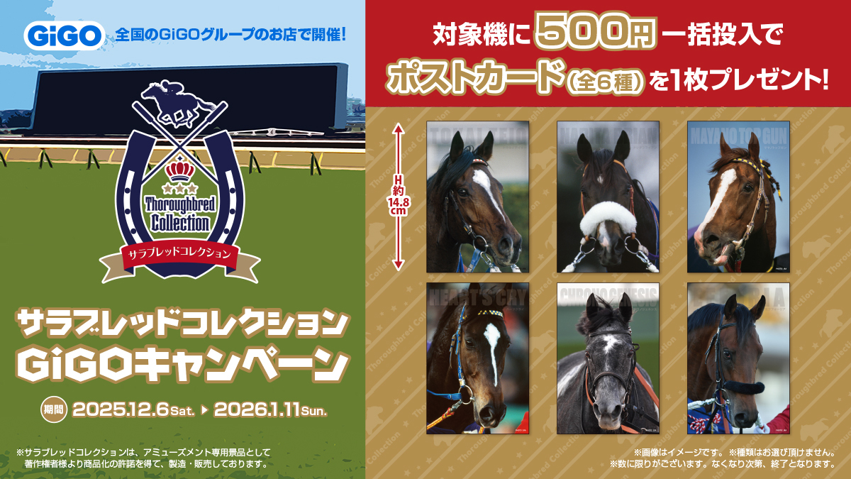 「GiGO ONLINE CRANE(GiGO ONLINE)」およびGiGOグループのお店にて、2025年12月6日(土)より、「サラブレッドコレクション×GiGOキャンペーン第2弾」が開催予定です。