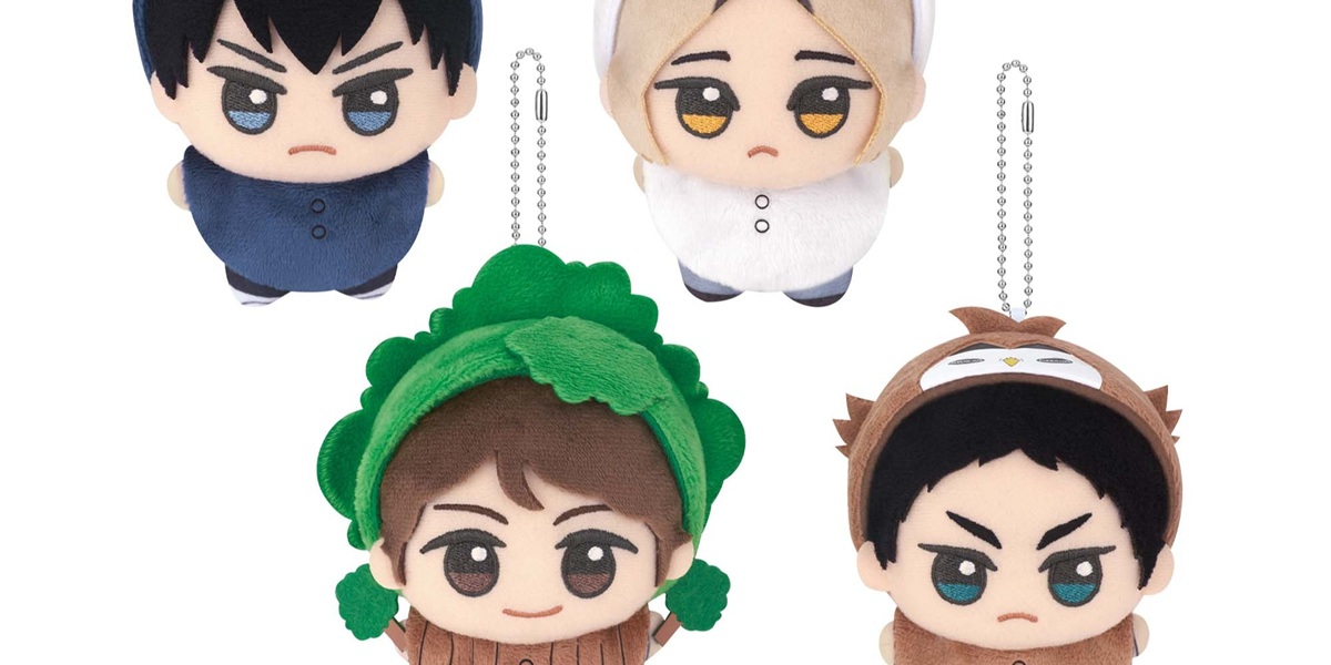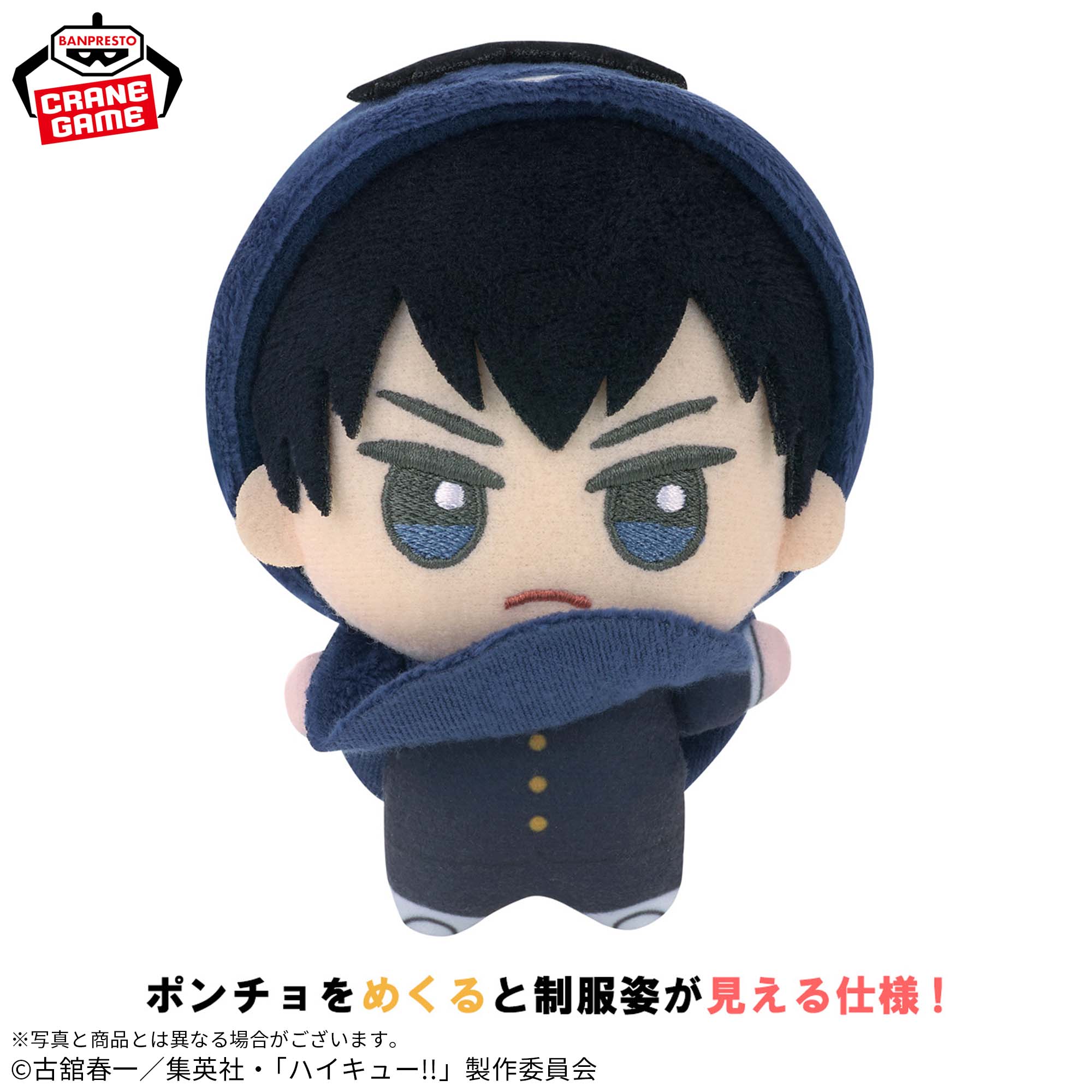 ヒナガラス、ネコ、森、フクロウをモチーフにしたポンチョ姿の「影山飛雄」「孤爪研磨」「及川徹」「赤葦京治」がラインナップ。ポンチョをめくると制服姿が見える仕様となっています。