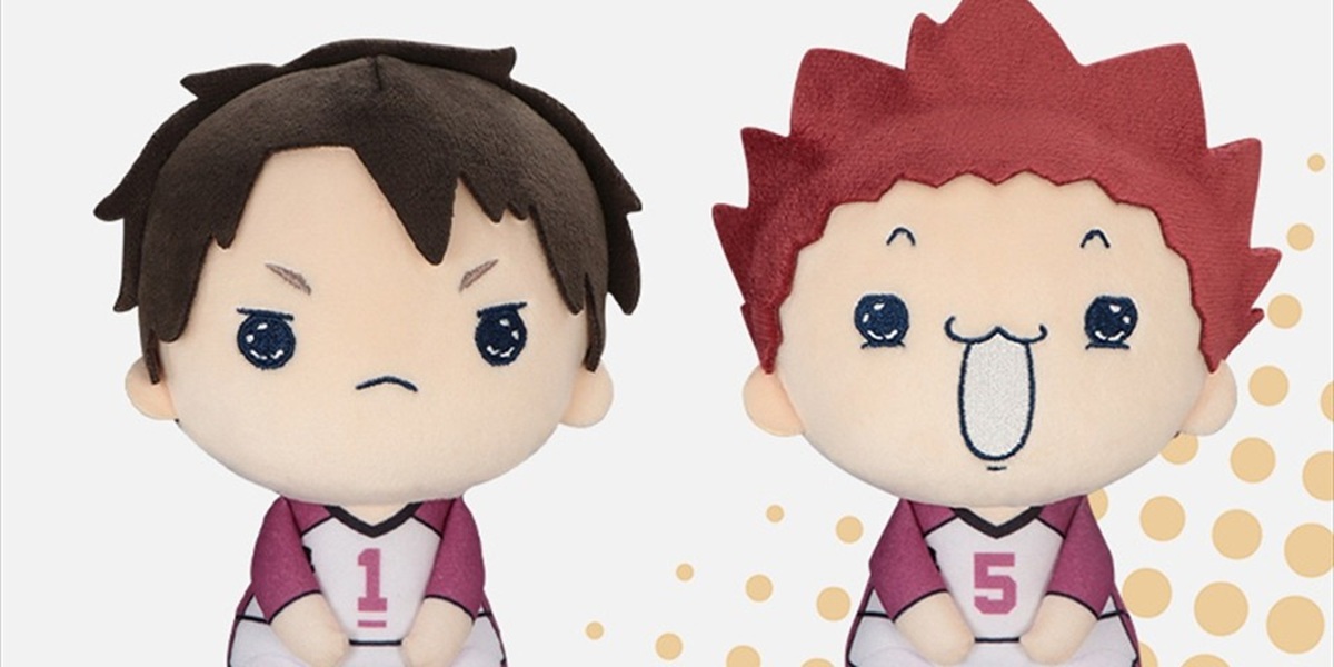 白鳥沢学園バレーボール部のウイングスパイカー「牛島若利」、ミドルブロッカー「天童覚」を展開。約15cmのぬい撮りしやすいサイズとなっています。