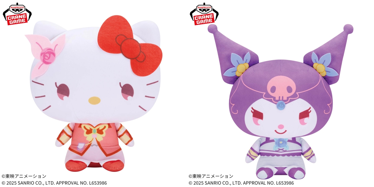 プリキュアの衣装を身にまとったコラボデザイン。キティはキュアルージュ、クロミはミルキィローズの姿で、約28cmの抱きしめたくなるビッグサイズで立体化。
