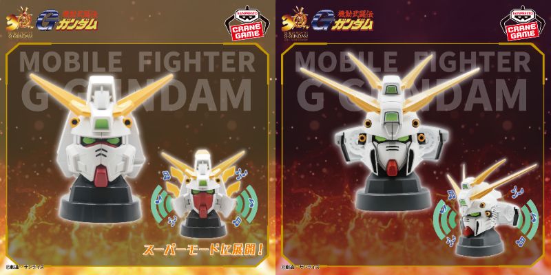 ネオ・ジャパン所属のドモン・カッシュが搭乗する「シャイニングガンダム」「ゴッドガンダム」の頭部を卓上サイズで立体化。飾るだけでなく音楽を流して楽しむことができます。