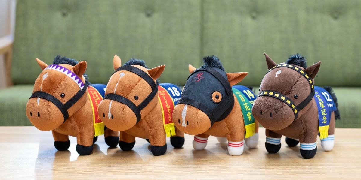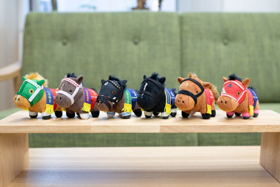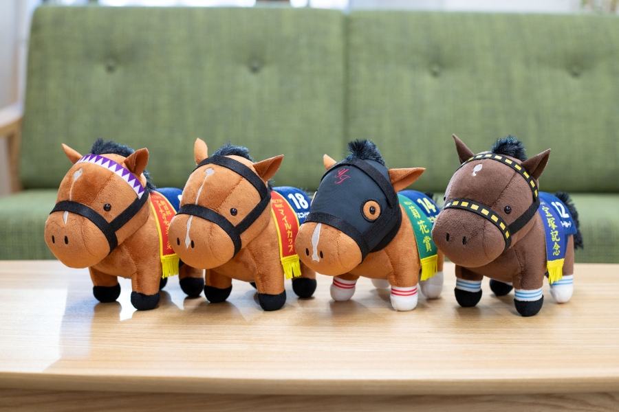 往年の伝説の名馬から今年のクラシックを沸かせた注目馬までが勢揃い。手触りの良い質感で、愛らしい姿にデフォルメされています。