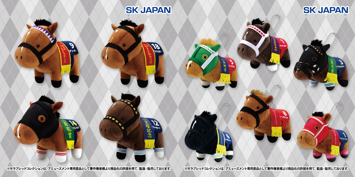 『サラブレッドコレクション』より、「サイレンススズカ」「ダノンデサイル」たちのぬいぐるみやぷちマスコットボールチェーンがプライズ景品としてオンクレに登場!