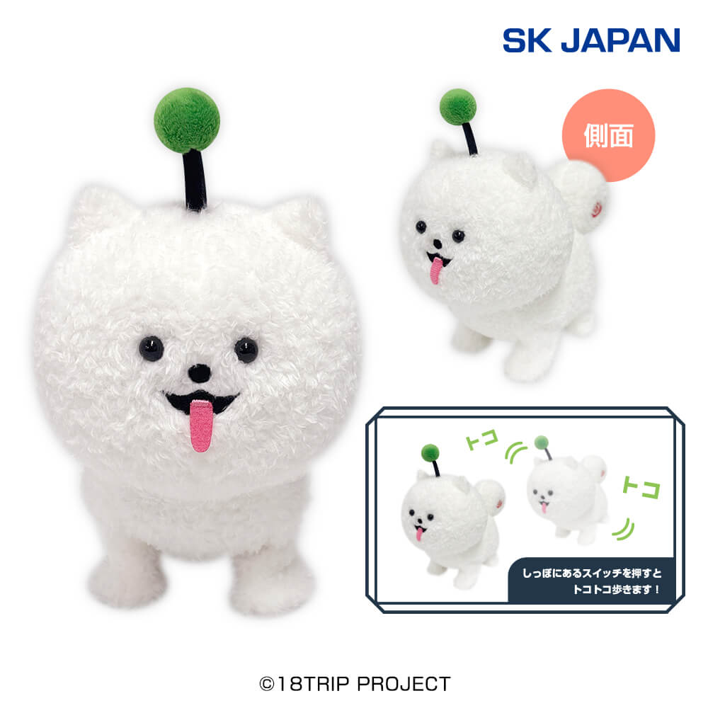 旅行会社「HAMAツアーズ」の看板犬を高さ16cmのミディアムサイズで立体化。しっぽにあるスイッチを押すと、トコトコ歩くギミックが作動します。