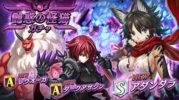 今回の「艶惑の怪猫(えんわくのかいびょう)」で、プレミアムガチャに魔属性の激超レアSキャラ「アダンダラ(CV:佐藤麗)」が追加されます。