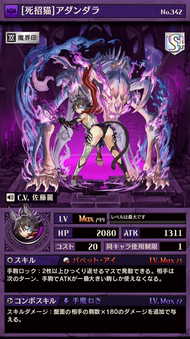[死招猫(ししょうねこ)]アダンダラ(S+) (CV:佐藤麗) 属性:魔