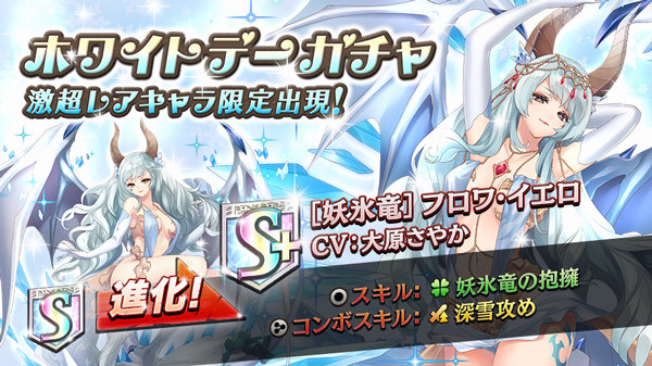 ホワイトデー限定ガチャに、竜属性の激超レアSキャラ「フロワ・イエロ(CV:大原さやか)」が登場します。
