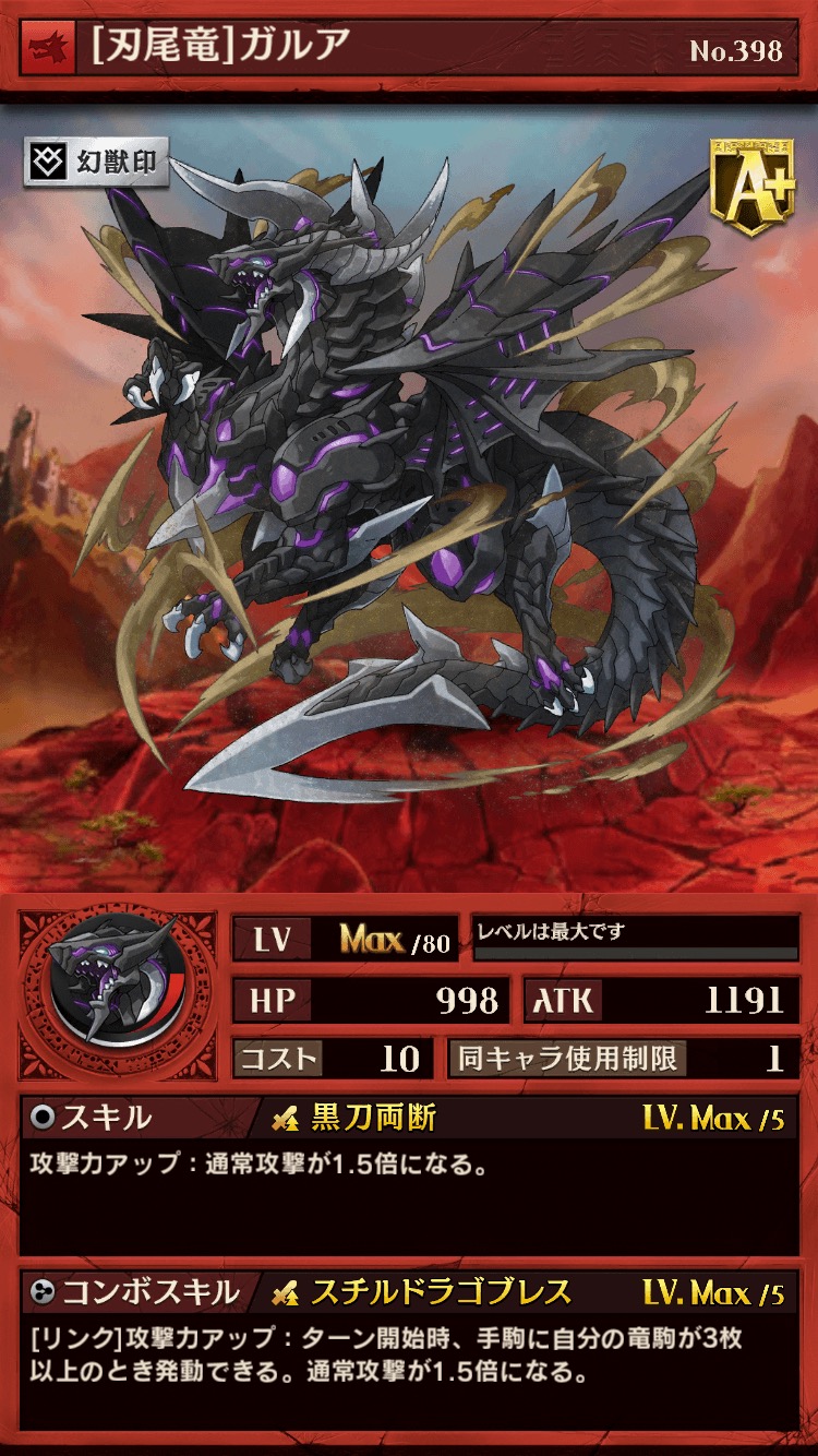 ガルア(A)/[刃尾竜(じんびりゅう)]ガルア(A+) 属性:竜