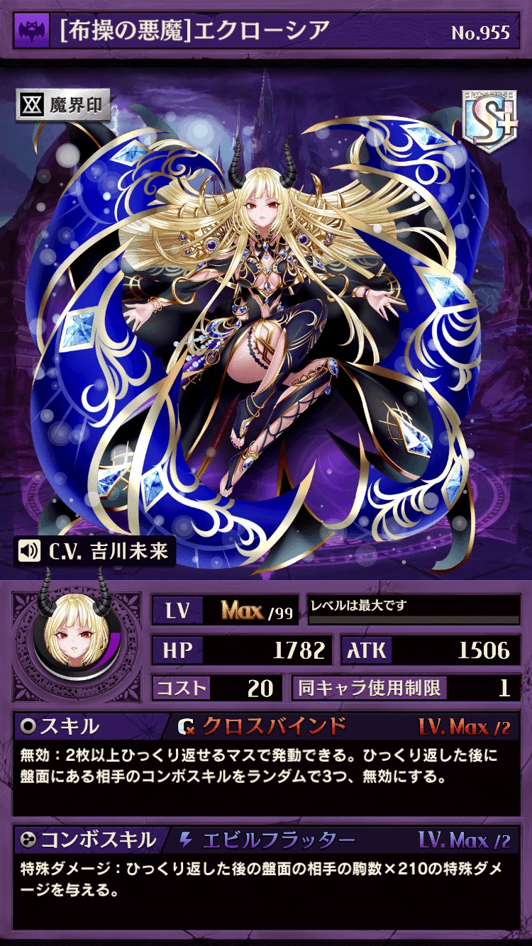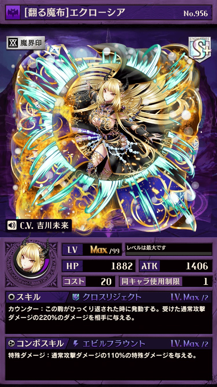 (左)進化:[布操(ふそう)の悪魔]エクローシア(S+)属性:魔(CV:吉川未来)