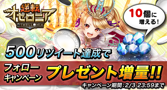 キャンペーンへは、公式Twitterアカウント(@Othellonia_info)をフォローし、キャンペーン用公式ツイートをリツイートすることで参加できます。